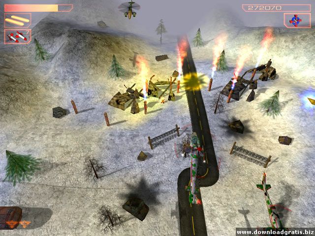 Aperte os cintos e pilote o seu helicóptero, porque existem 20 fases para completar, mais de 100 unidades inimigas distintas para encarar, cinco tipos de terreno hostil para atravessar e três chefões terroristas para detonar. Você tem dez helicópteros diferentes à sua disposição que vão ajudar a completar a sua missão.