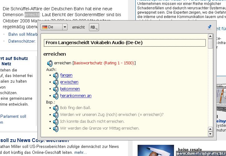 - Funcionalidade pop-up Scan. Uma pequena janela aparece com a tradução de uma palavra escolhida a partir de outro aplicativo;