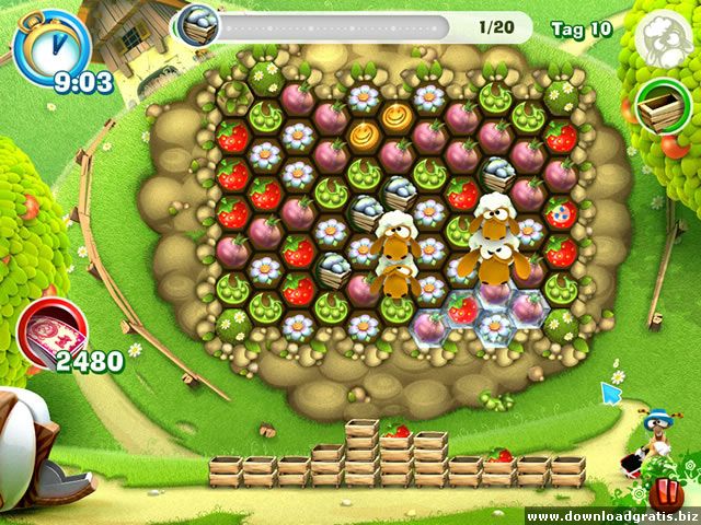 Junte-se ao nosso herói e seus entes queridos e ajude-os a arar e semear através de 80 lindas fases. Arraste as frutas para combinar peras, maçãs, morangos e mais, enquanto encaixota os produtos e envia para o mercado a fim de ganhar um dinheirinho. Desafie-se também com uma variedade de objetivos, use itens especiais para ganhar muitos pontos extras, compre upgrades na fazenda, desfrute de 20 fases de bônus hilariantes e tente a sorte na tosquia de ovelhas!