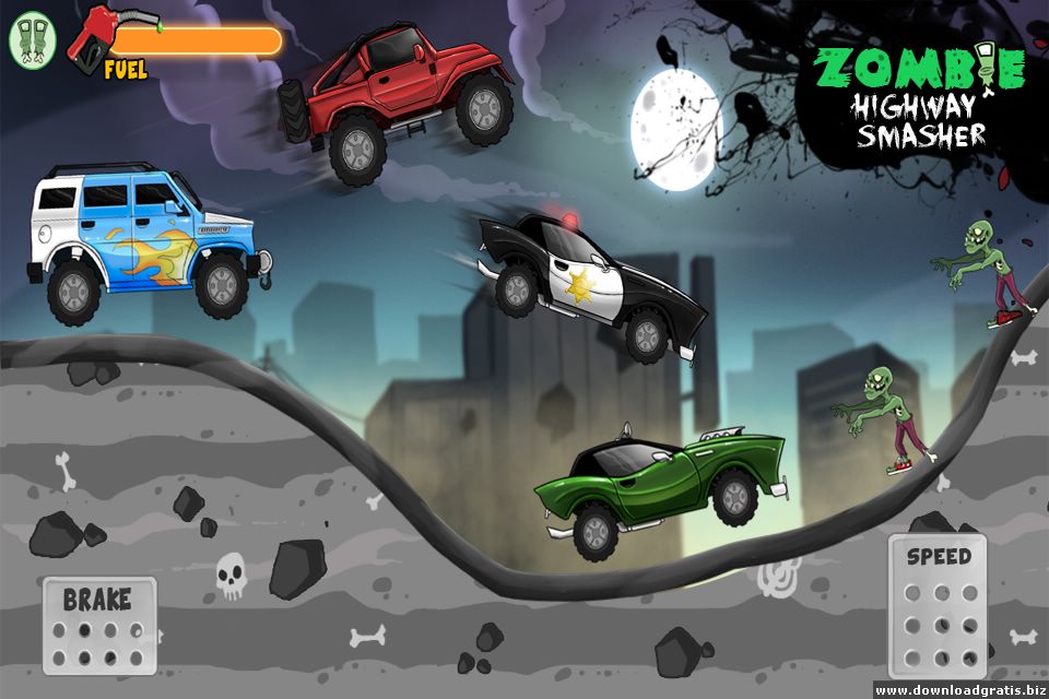- Mate quatro diferentes espécies de zumbis para ganhar gold e destravar melhores carros com melhores capacidade de combustível;