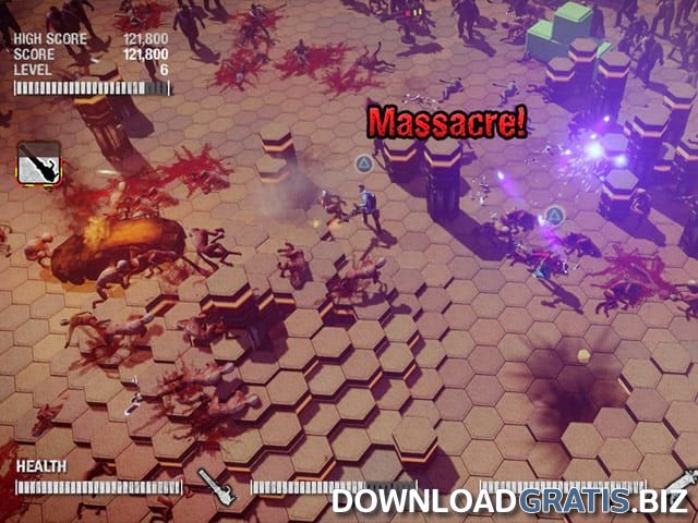 KILLALLZOMBIES é um jogo de tiro com dois controles sobre sobrevivência televisionado em uma arena futurista, onde os espectadores ativam perigos enquanto ondas de mortos-vivos inundam o campo. Você atira, desvia, sobe de nível e escolhe vantagens conforme o piso de peças hexagonais muda e armadilhas aparecem. Lute contra chefes, troque de armas e busque partidas mais longas. Entre agora e veja quanto tempo você consegue durar!