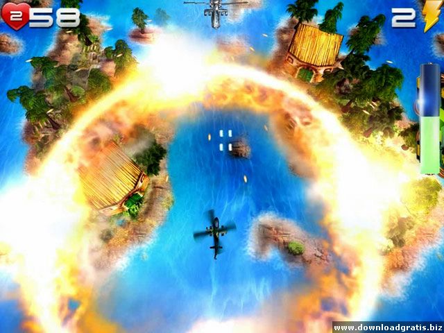 Você voa para frente, ziguezagueia pelo fogo e detona alvos sem parar. É possível alternar entre metralhadoras e foguetes, guardar um super ataque para situações difíceis e estudar os padrões dos chefes para superá-los. Existem três helicópteros mudam de velocidade e poder de fogo, para combinar com sua abordagem, enquanto dez fases e cinco chefes mantêm as partidas rápidas e focadas.